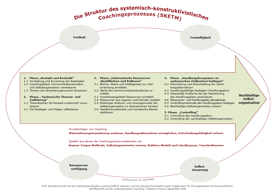 Das von mir angewandte Coaching-Verständnis der Hamburger Schule ist Hauptbestandteil meiner Arbeit mit Ihnen und basiert auf der Theorie vom Selbstorganisierten Coaching. Jedes meiner Coachings läuft nach derselben Struktur ab. Sie erreichen durch den angewandten Prozess mittels festgelegten und situationsbedingten Reflexionsangeboten eigene Lösungen und Handlungsalternativen und lernen während Ihres Coaching die Grundzügen und Wirksamkeitserwartungen des Prozesses. Sie als mein Coachee werden diesen Coaching-Prozess mit nach Hause bekommen und werden dann in Variationen Ihres Themas in der Lage sein, sich in zukünftigen Kontexten selbst erfolgreich zu coachen! Das Coaching der Hamburger Schule durch ist eine definierte Theorie mit entsprechender Axiomatik. Hieraus geht hervor, dass ich als Coach die Prozessverantwortung trage und Sie als Coachee die Ergebnisverantwortung und Inhaltliche Selbststeuerung haben.